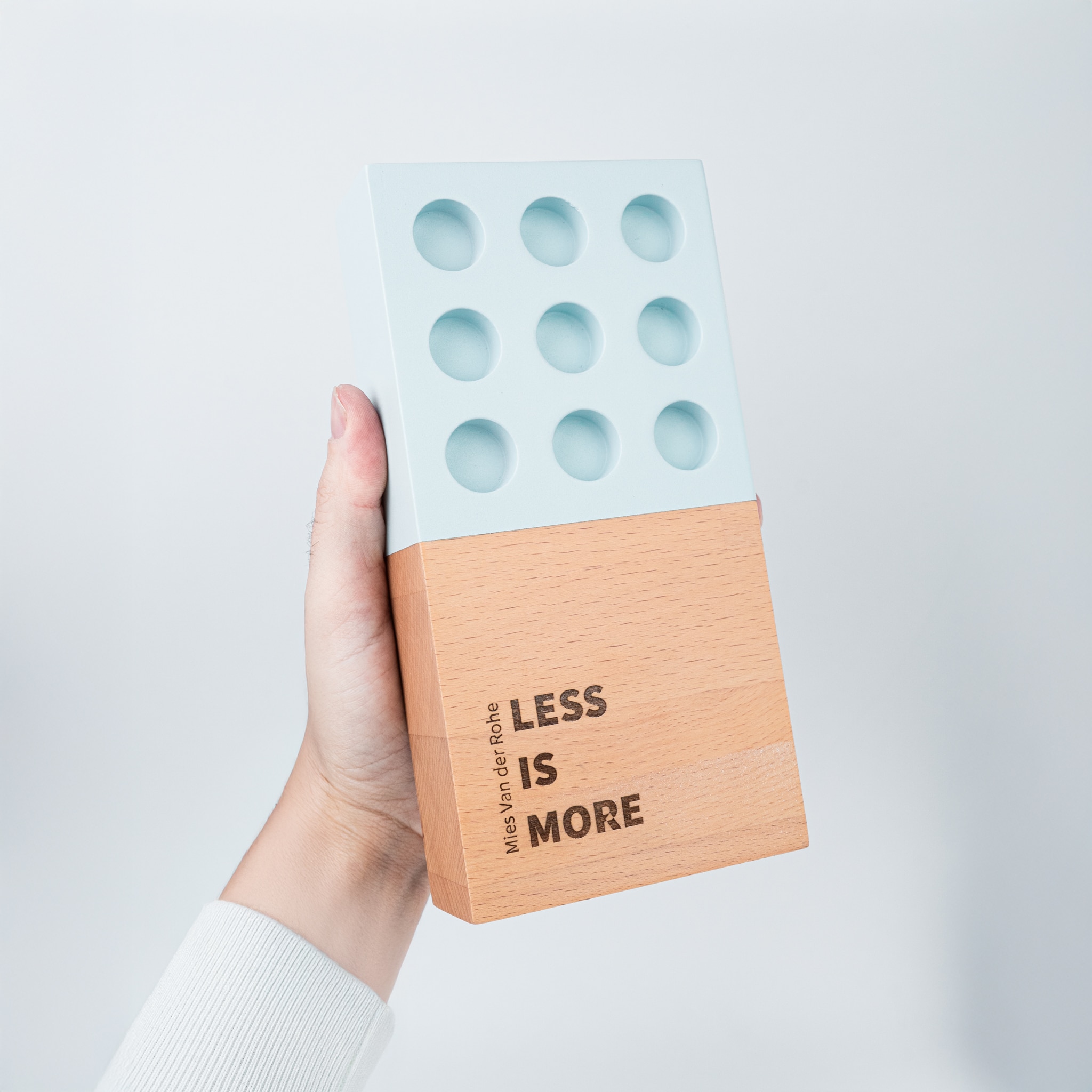 El trofeo Dots es un galardón que no deja indiferente a nadie. La pieza es un paralelepípedo con unas marcas circulares repartidas de manera uniforme siguiendo un patrón. Dots es un trofeo que transmite rigor, que está hecho a partir de una pauta y que comunica esa seriedad y confianza propias de un sistema que es preciso y no falla. El trofeo, por su estética, puede recordar también a un ladrillo y conceptualmente puede ligar con la idea de estructura de una organización, en el sentido de que un ladrillo es una pieza de un muro, una parte del todo. La analogía es casi como dar un trocito de marca, una fracción de esa arquitectura o construcción que es la empresa o una organización.