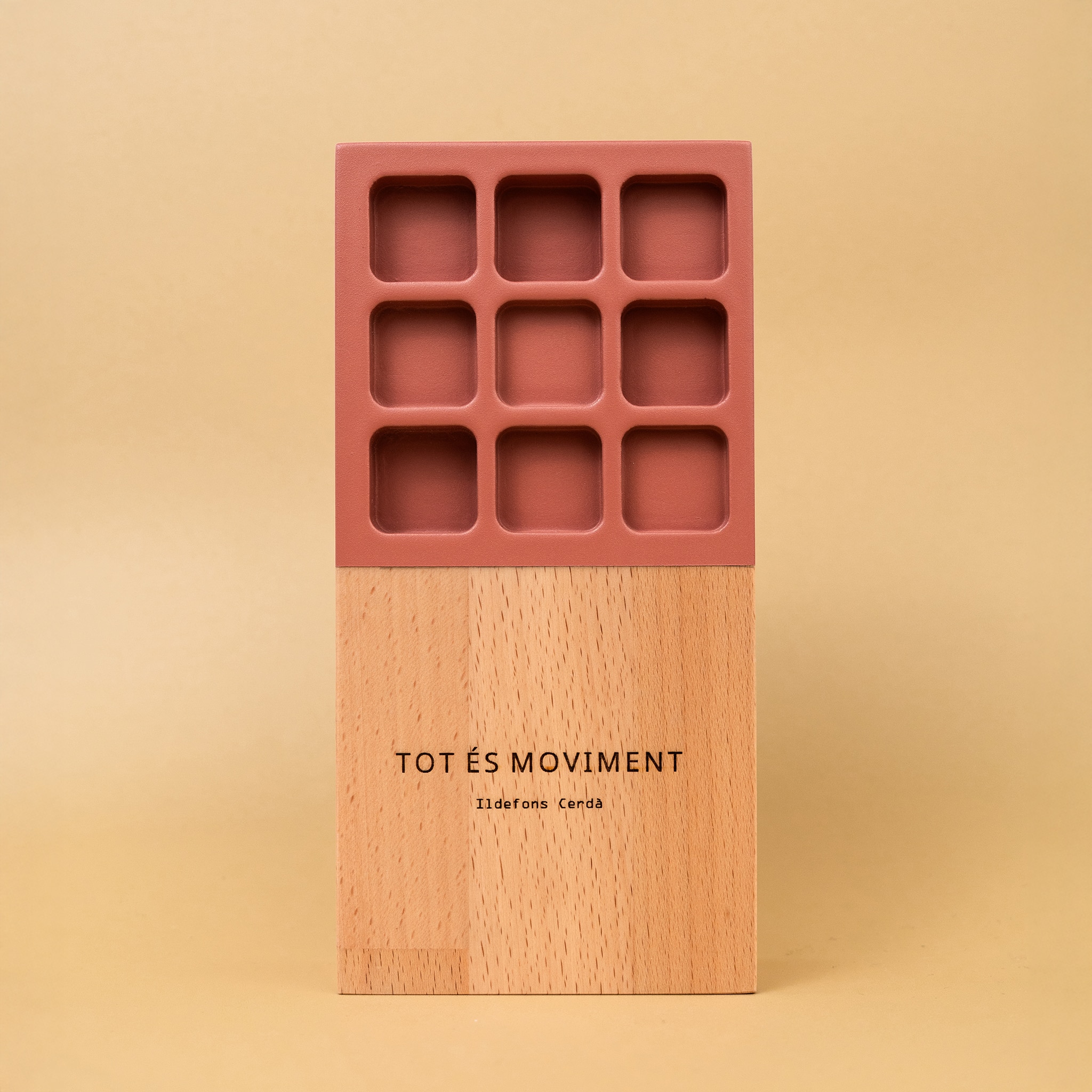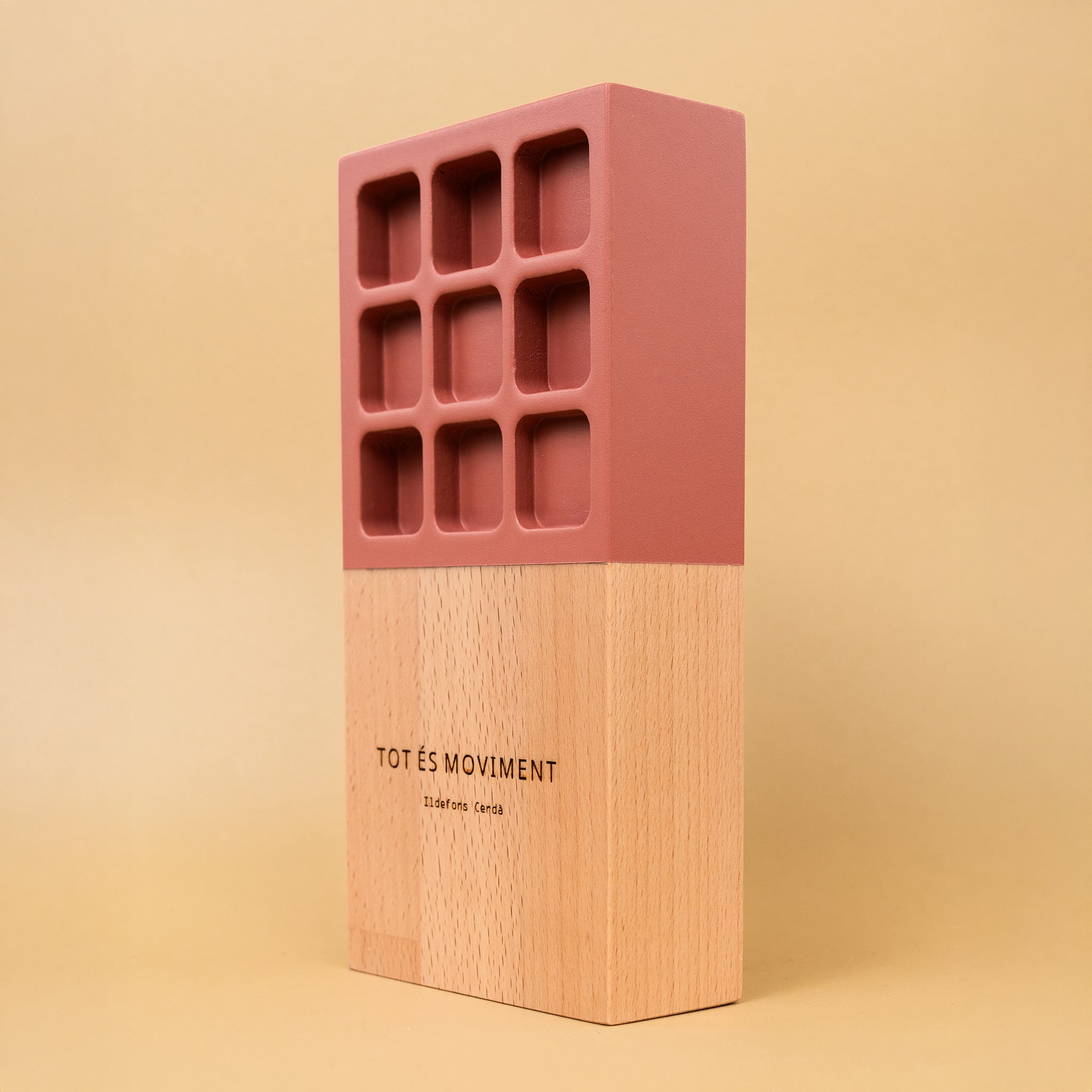 Fabricado con madera de haya, este trofeo no solo destaca por su diseño geométrico y contemporáneo, sino también por su respeto al entorno y su producción local. La pieza refleja nuestro compromiso con la artesanía consciente, combinando tradición y diseño para dar forma a un objeto que representa tanto el reconocimiento como la proyección hacia el futuro.