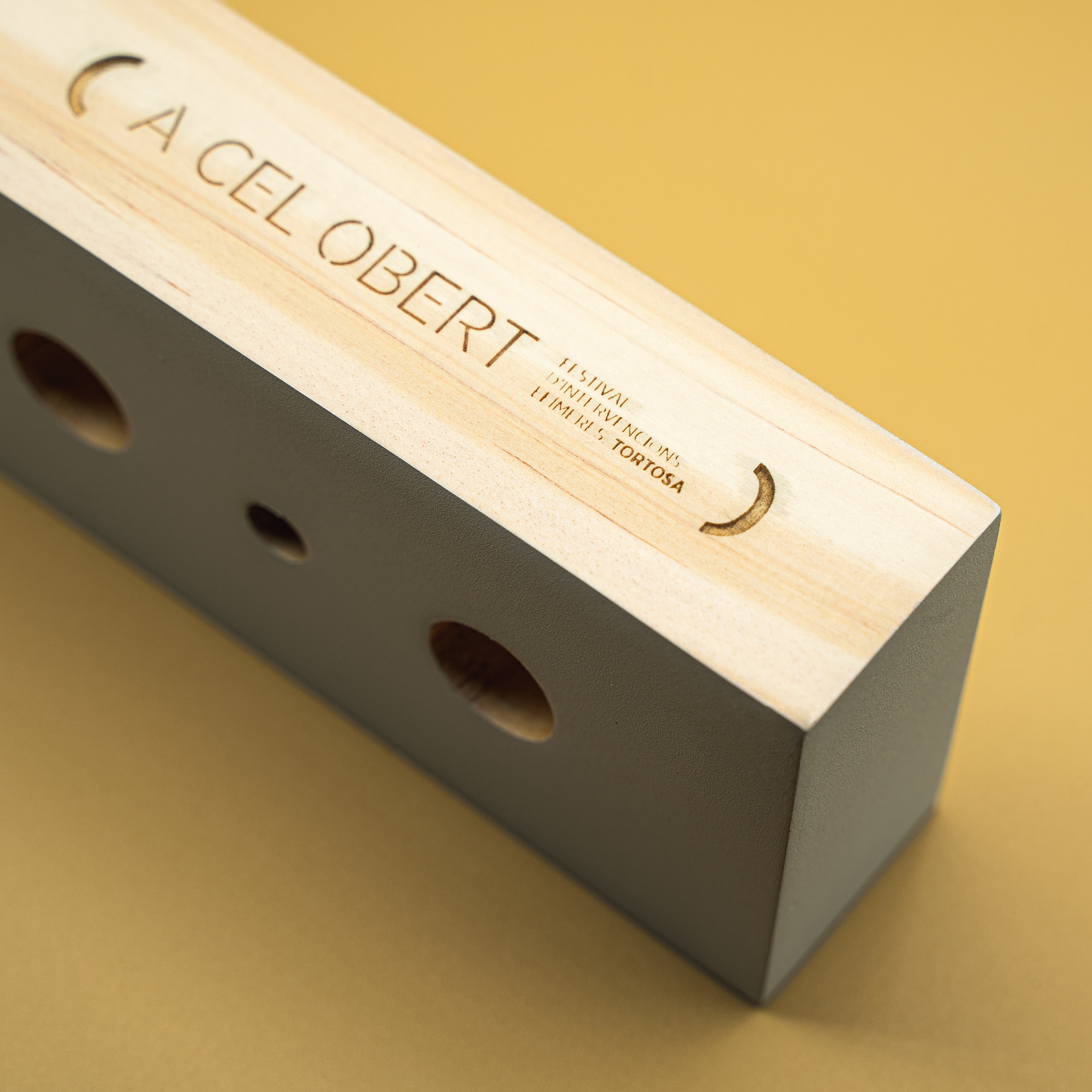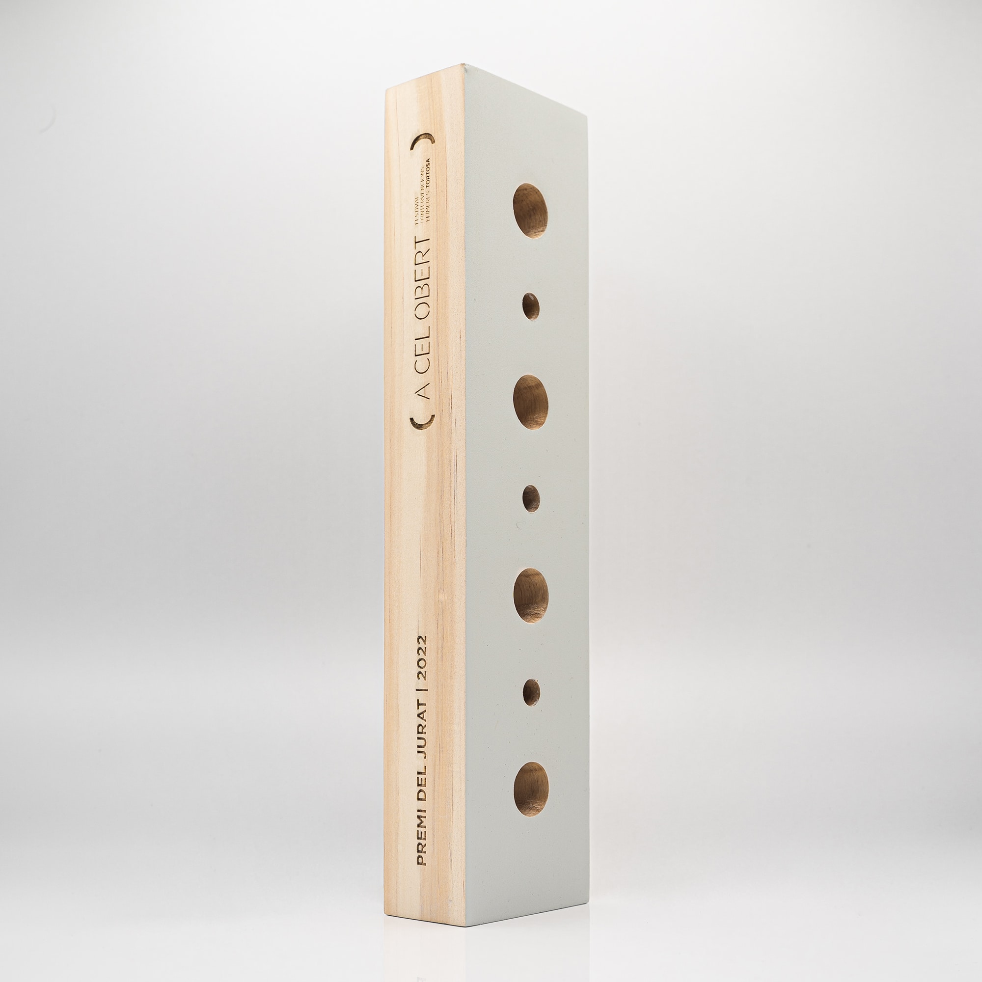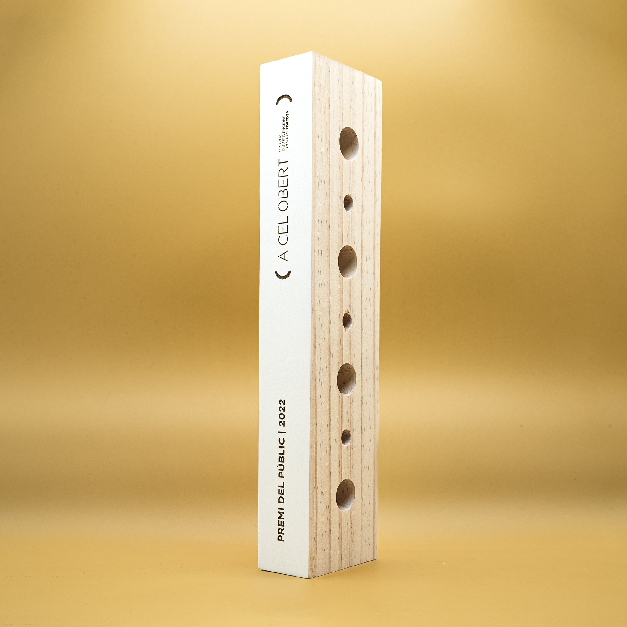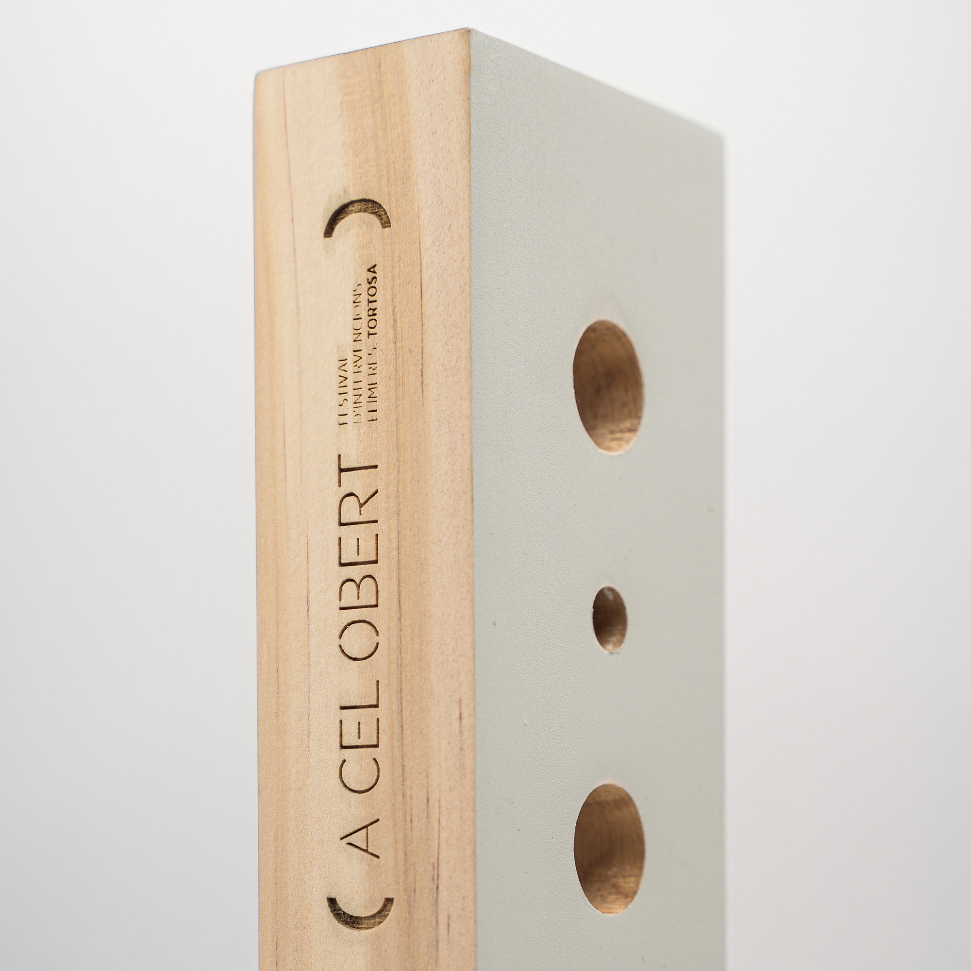 En esta edición del Festival de Arquitectura Efímera de Acelobert la temática era «el ritmo» y optamos por diseñar un trofeo con una serie de perforaciones de dos diámetros distintos para simbolizar una pauta.